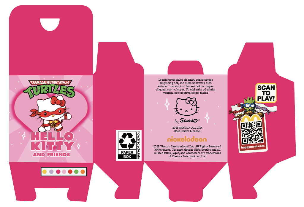 For this project I have created my own packaging design, using Adobe Illustrator, for this Hello Kitty x Ninja Turtles collab.